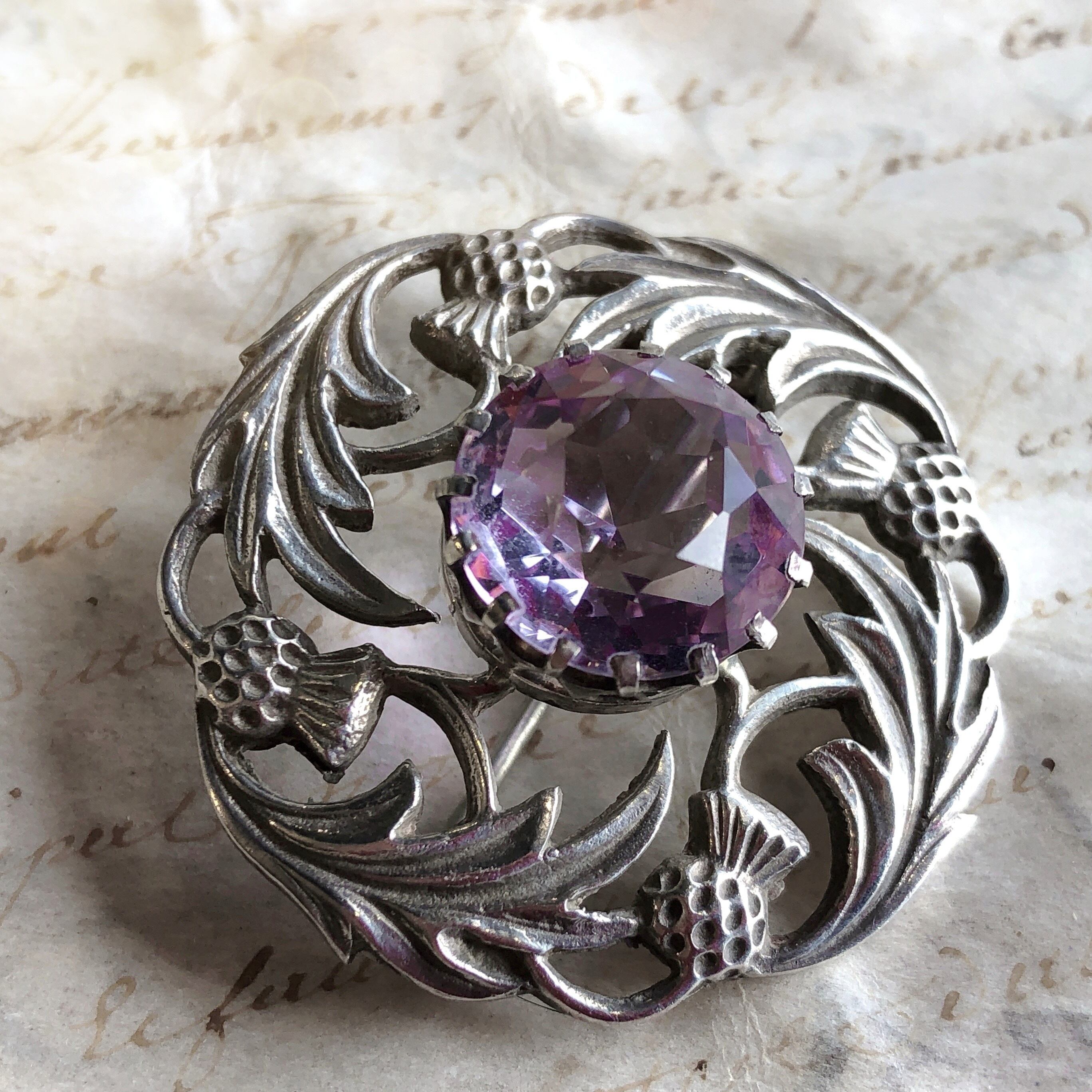 こちらは、台座にエジンバラのスターリングシルバーのホールマークが打たれていることでもわかるように、スコットランドで製作されたものです。スコットランドのアザミと言えば、13世紀、当地を外敵の侵略から救ったという故事による国花であり、「独立」を表します。また、それ以前からスコットランドに群生しており、古代ケルト世界では「人格の高潔さ」を象徴する花でもありました。
