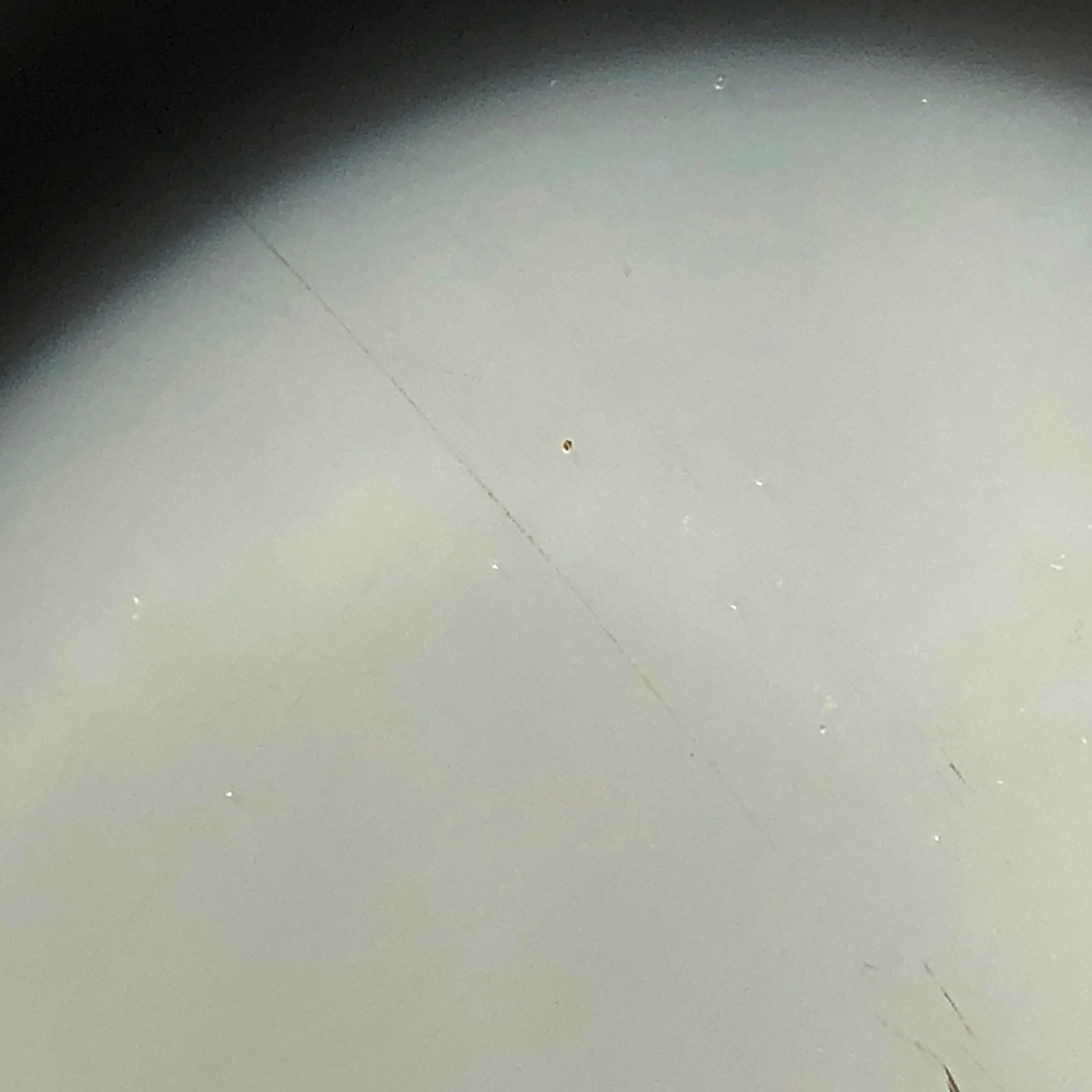 乳白の周囲をぼんやりと青白い線が取り巻いています。光を浴びると薄いアプリコットの遊色を浮かべ、反対側に引く光の帯はもう少し薄くレモン色に近くなります。