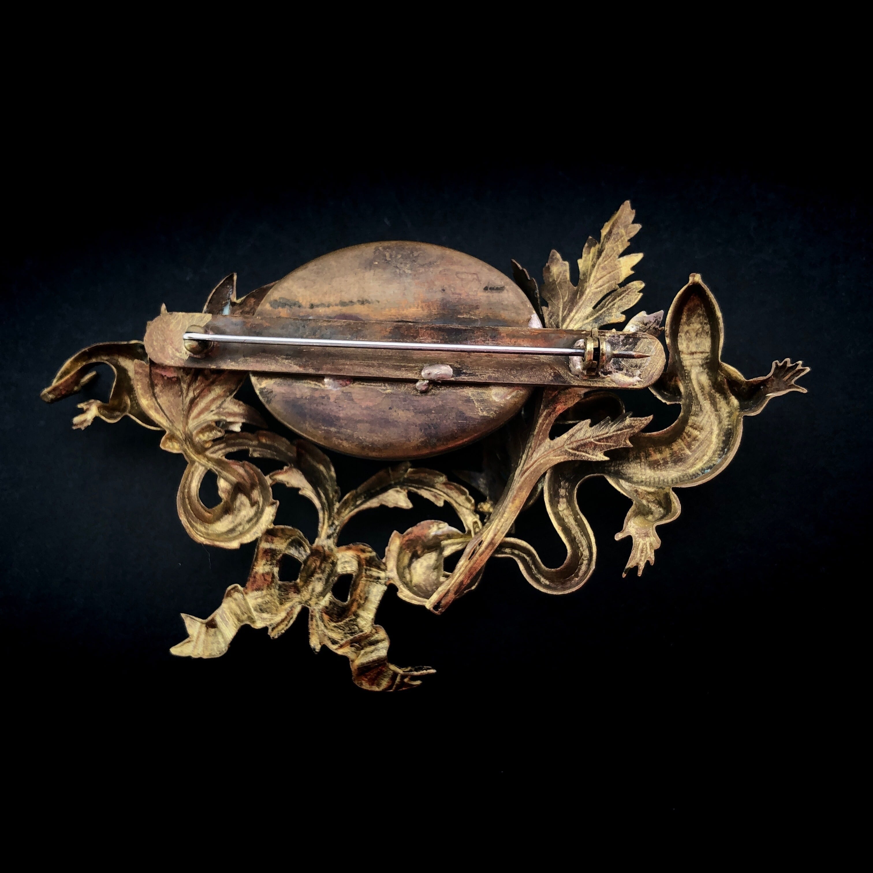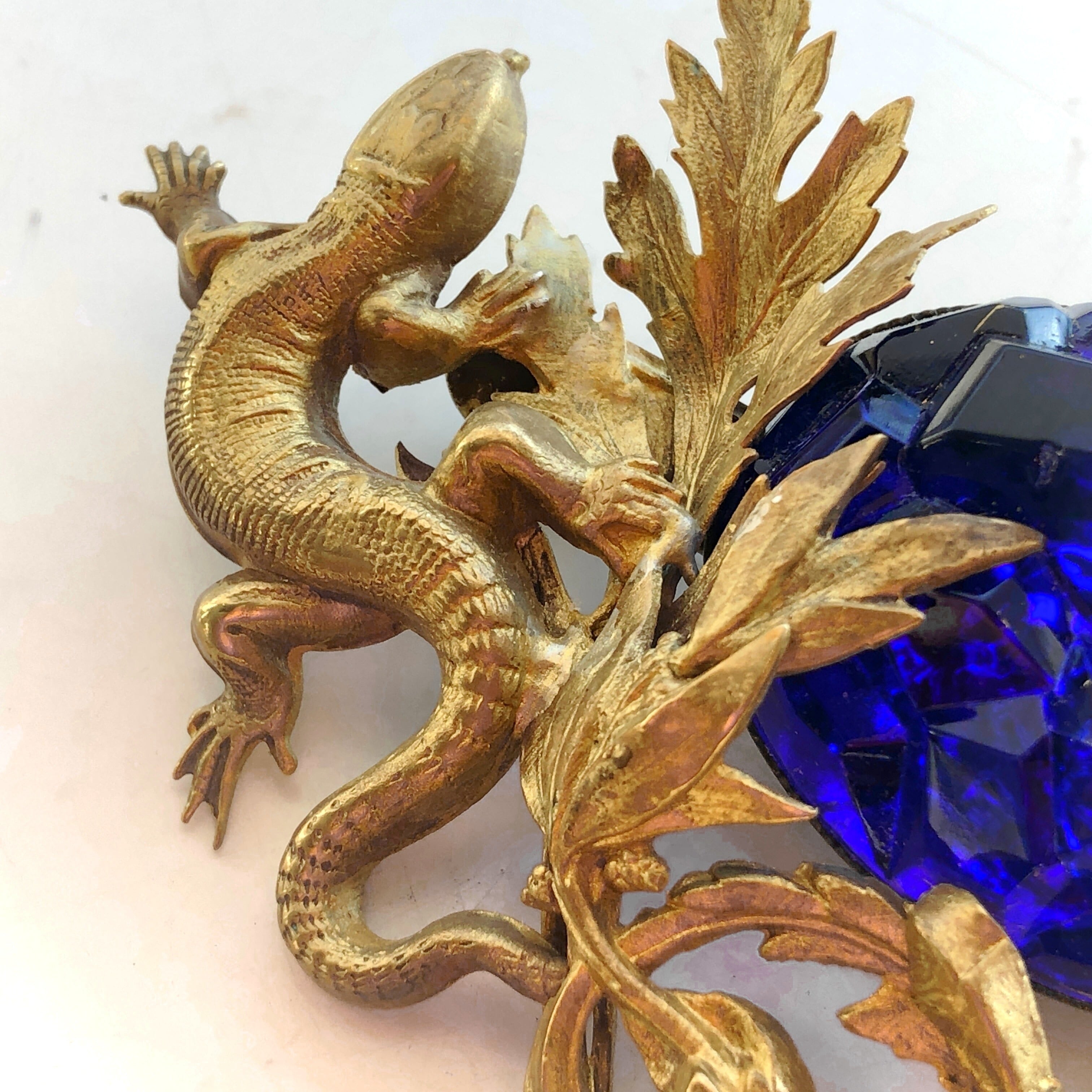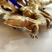 その宝物を守る2体の蜥蜴がいます。その身体をくねらせる様、台座の植物の葉なども決して戯画的な意匠ではなく、全てを金に変える力で固定されたような、どこか神秘的な、さらに呪術的とさえ言えるような雰囲気です。台座も含めた横幅が最大約10.5センチと大振りで、その存在感からはさらに秘められた物語が滲み出てくるようです。