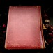 赤茶色の革の装丁に金属の装飾を施したフォトアルバムです。浮き彫りの中央にある首飾りを身につけた女性の顔は女神のものでしょうか。羽根を拡げているようでもあり、何かのシンボルに守られているようでもあります。どこかケルトの女神を思わせるところがあり、神々しく、少し呪術的で、神秘的な雰囲気を感じさせます。四隅の装飾も中央の女性を象徴するような意匠に見えます。