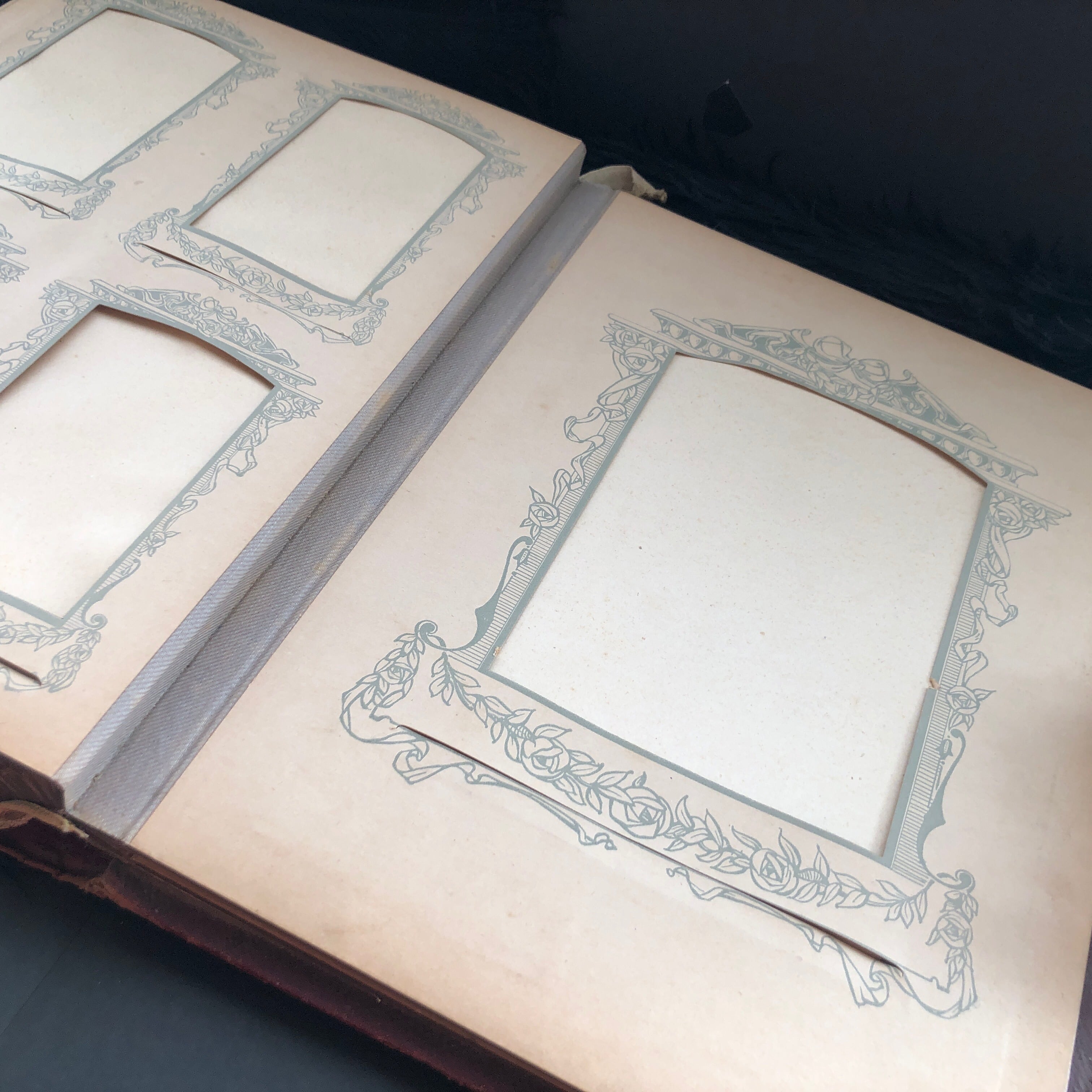 中には写真を差し込む大小の窓がついたページがあり、薔薇とリボンをモチーフにした装飾に縁取られて飾ることができるようになっています。