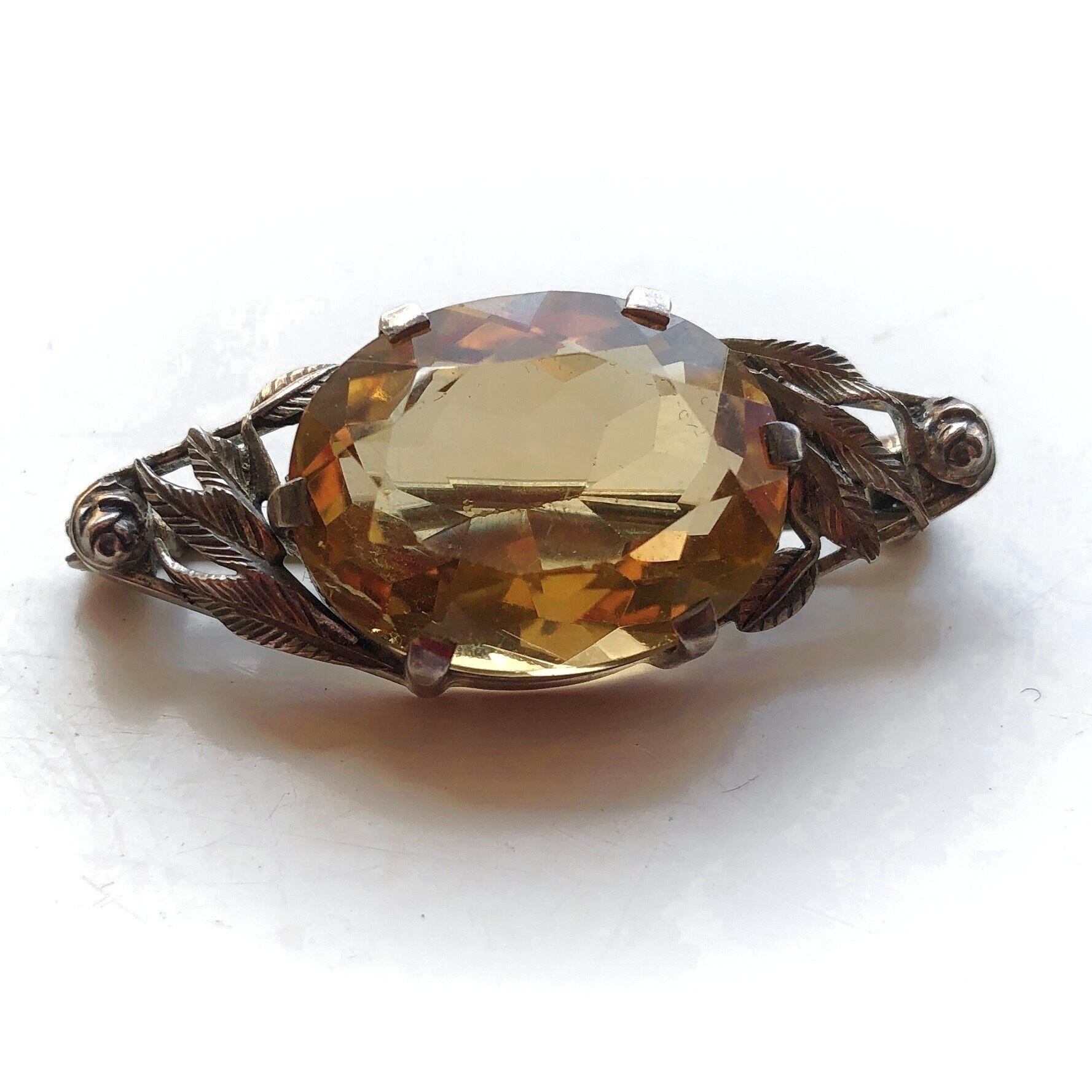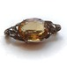 中央に大粒の黄水晶がひとつ置かれたブローチです。綺麗にカットされた黄水晶は澄んだ薄い黄色が少し黒みを帯びて、とてもシックな美しさです。石の周囲のみを固定してありますので光は背面へと透過し、この水晶の透明感、角度によって放つ様々な煌めきをお楽しみいただけます。