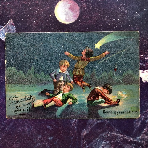 これはクロモリトグラフで印刷されたトレードカードと申しまして、テレビなどない時代の宣伝カードなのです。現在とは印刷法が違い、その味わいは今では得がたいものとなっています。