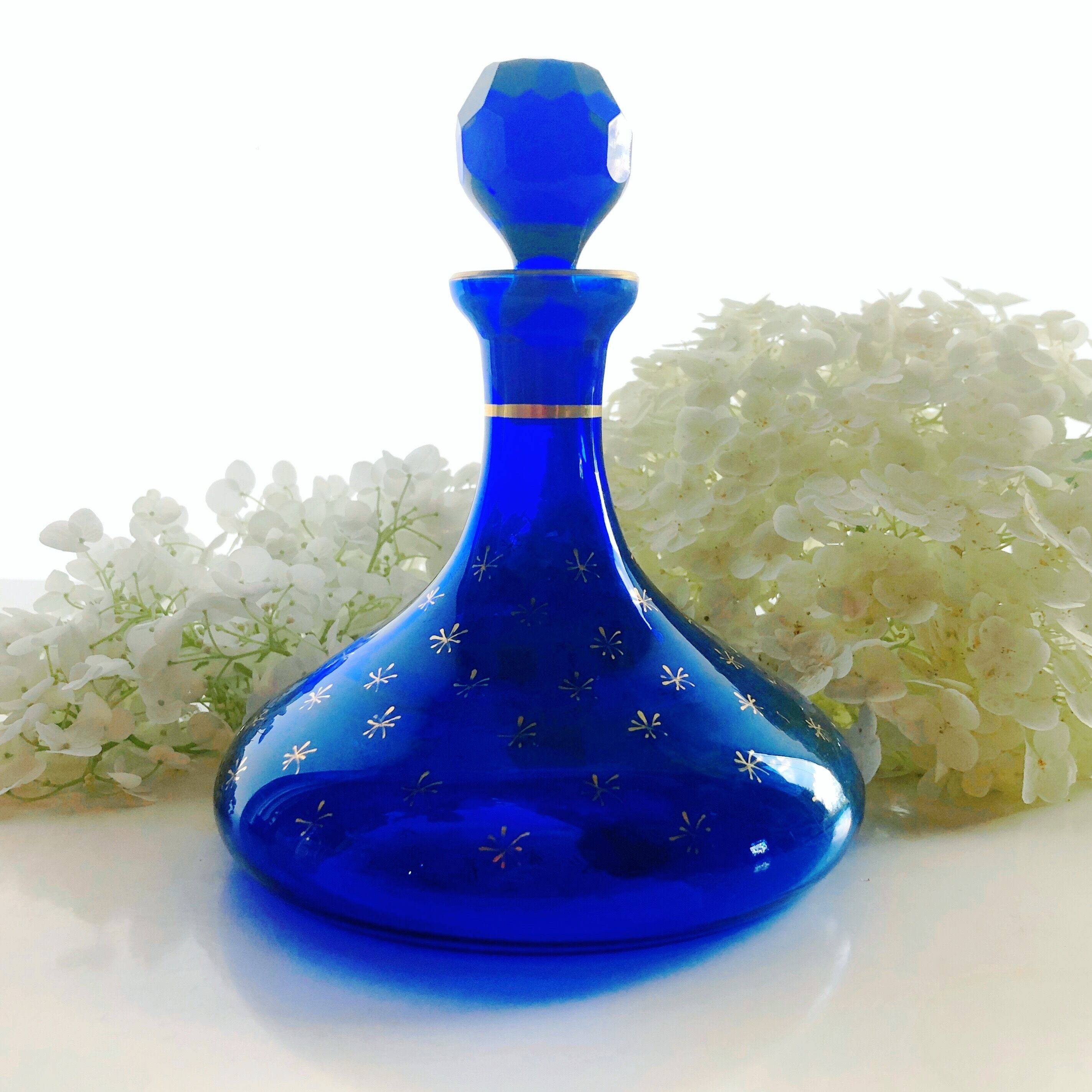 古いものですので金彩に擦れや消えがあり、全体に傷、汚れがあります。古いデキャンタは栓が失われていることもありますが、こちらは栓もオリジナルのガラス製です。