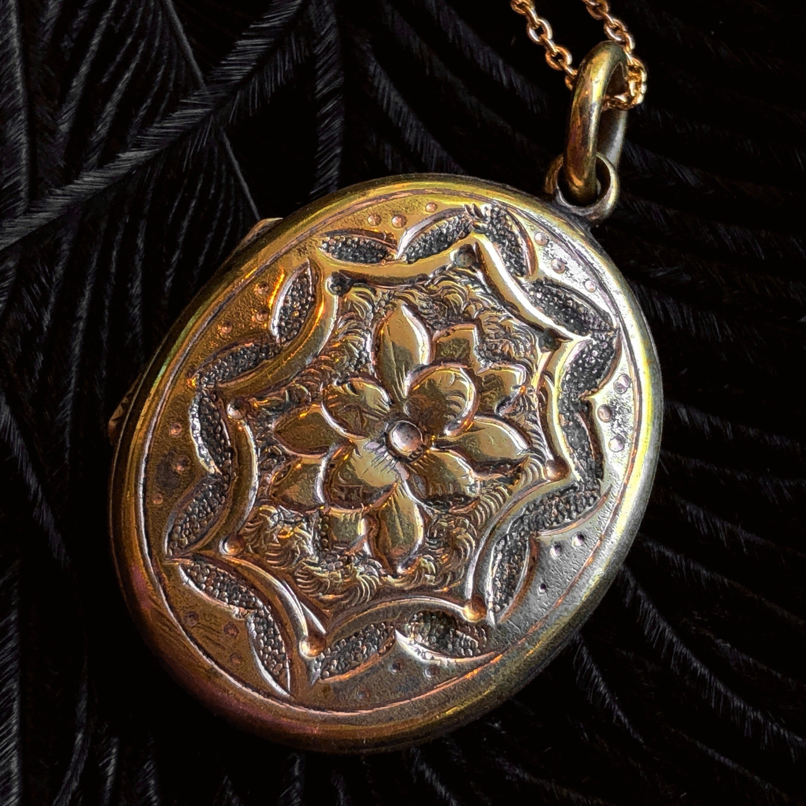 両面に花を浮き彫りにしたペンダントです。中を開けて何かを納めることができます。