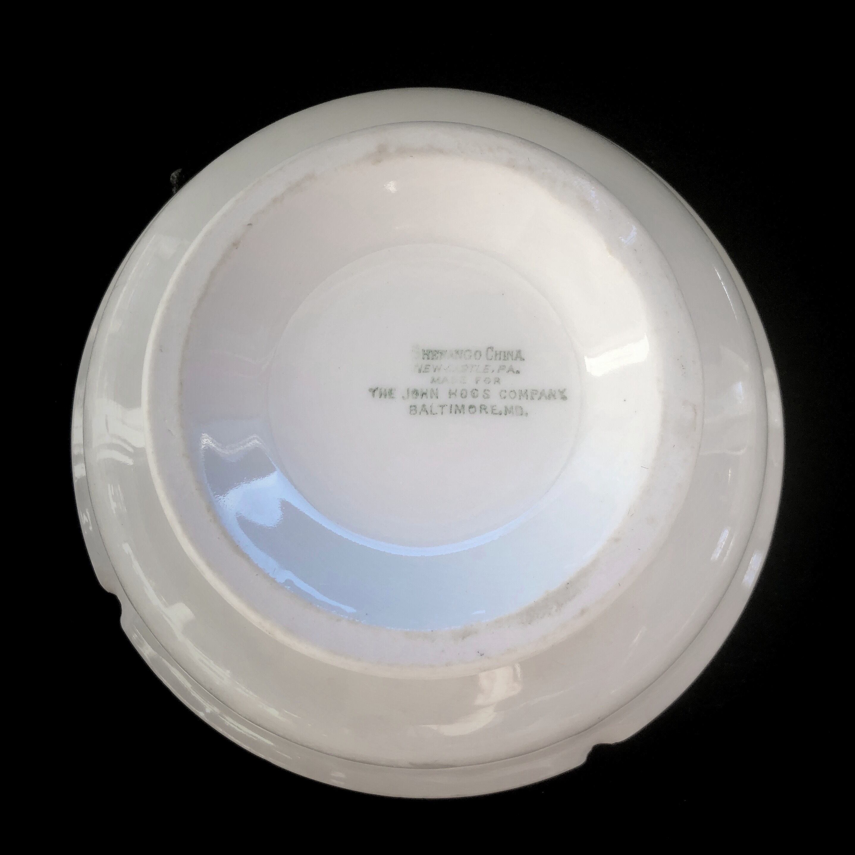 1960年代から70年代にホワイトハウスの食器も製作したShenango China社で作られたもので、製作年代の詳細は不明ですが、20世紀初めから1930年代までのものと推測されます。