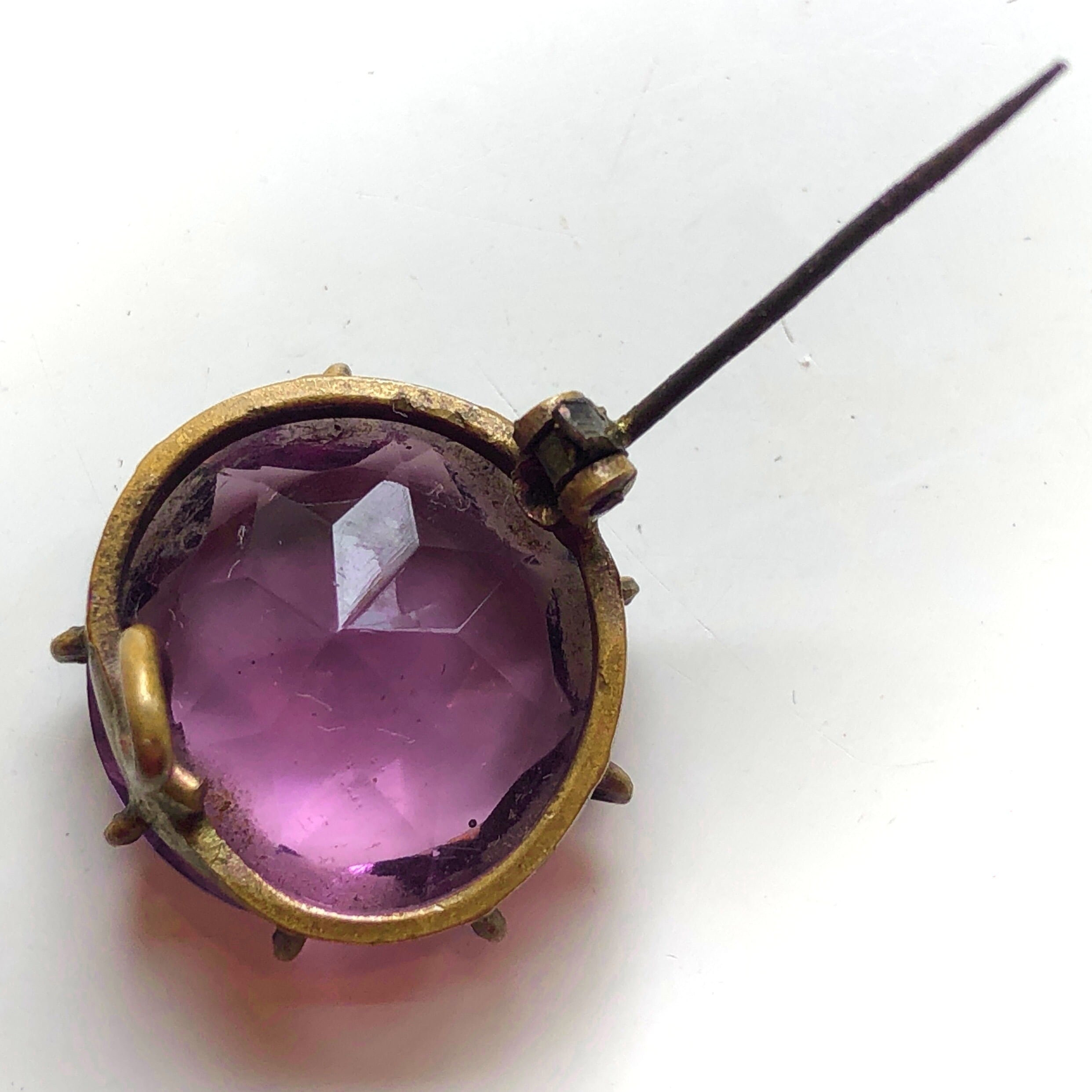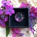 綺麗にカットされた一粒のアメジストのブローチです。透明感のある紫の粒がほんのりとピンク色を帯びて、鋭く澄み切った光にふと優しい温かみを感じるように、ひとつの塊の中に相反する感覚が美しく存在しています。裏側のカットが角度によって煌めきを放ち、エレガントな佇まいに華やかなアクセントを添えています。