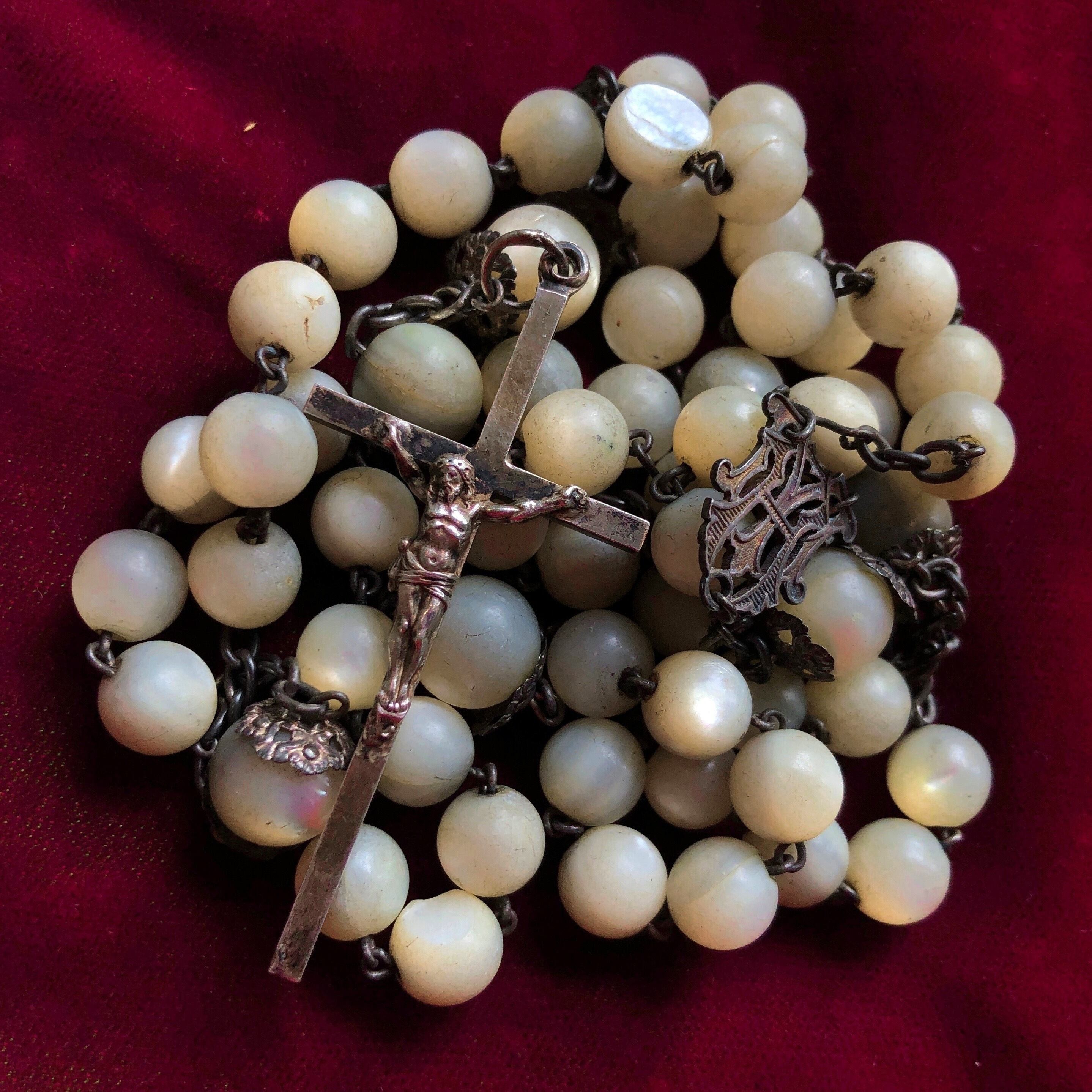 真珠貝のビーズのロザリオ