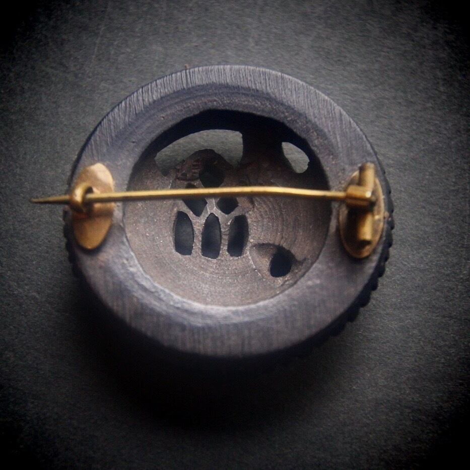 黒い木に古寂びた聖堂を彫り込んだブローチです。この素材自体、オークが数千年かけて炭化したボグオークですので、題材にこれほどふさわしい素材もないでしょう。