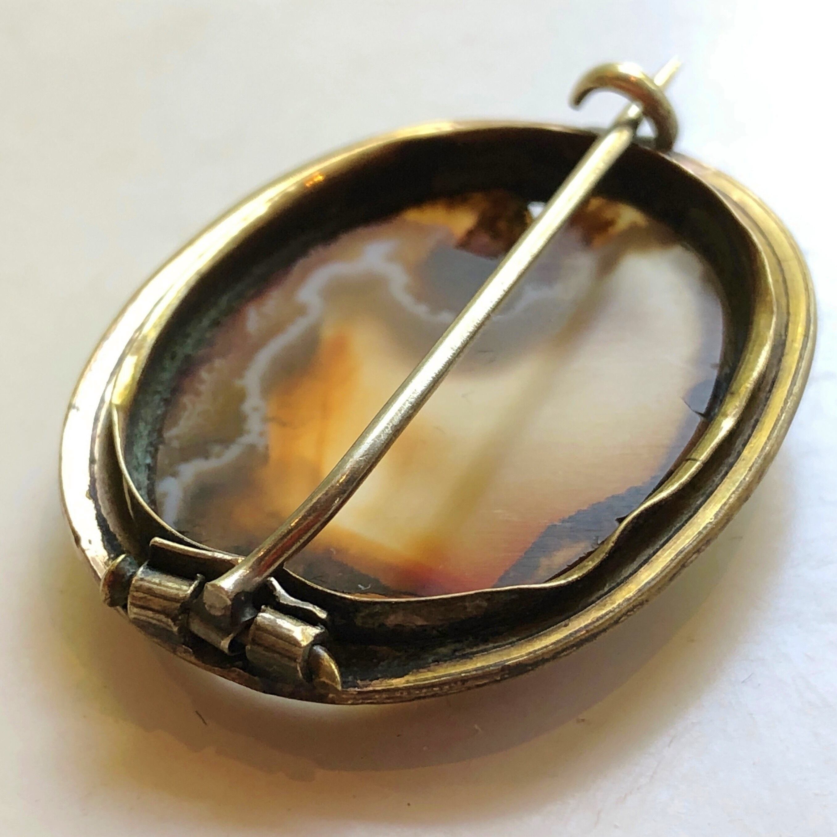 19世紀、ヴィクトリア朝の古い瑪瑙のブローチです。美しく磨かれた一枚の瑪瑙には幻想的な風景が浮かんでいます。それは意図したものではなく、全くの偶然に自然が生み出したものなのですが、しかし、そこには確かにここではないどこかが存在しているのです。