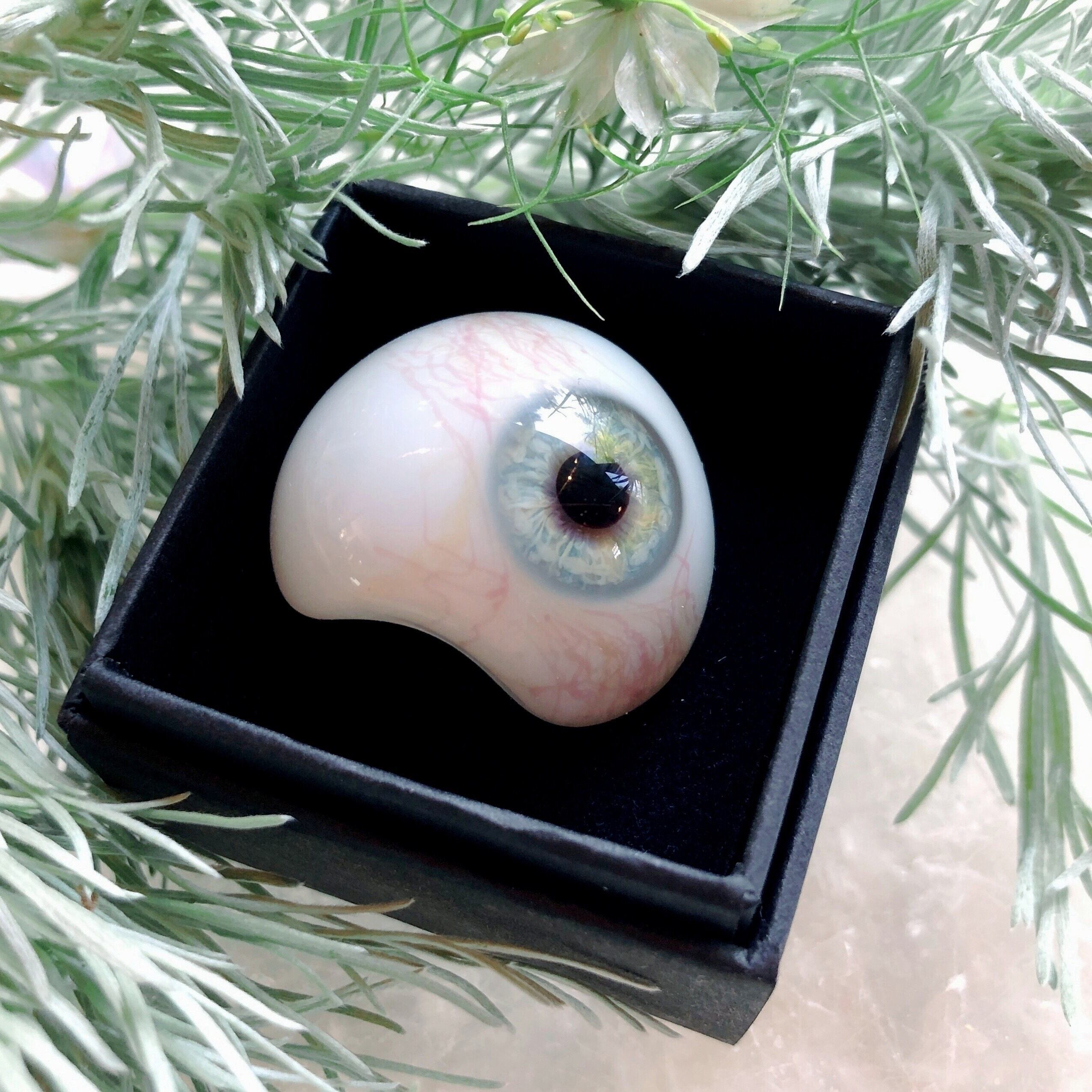 黒目の周りには葡萄酒色も滲んでおり、陽の光を浴びた海の青もちらりと見え、様々な色彩が織りなす義眼なのですが、全体の印象は淡い青で、このような淡く美しいものは珍しいと思います。