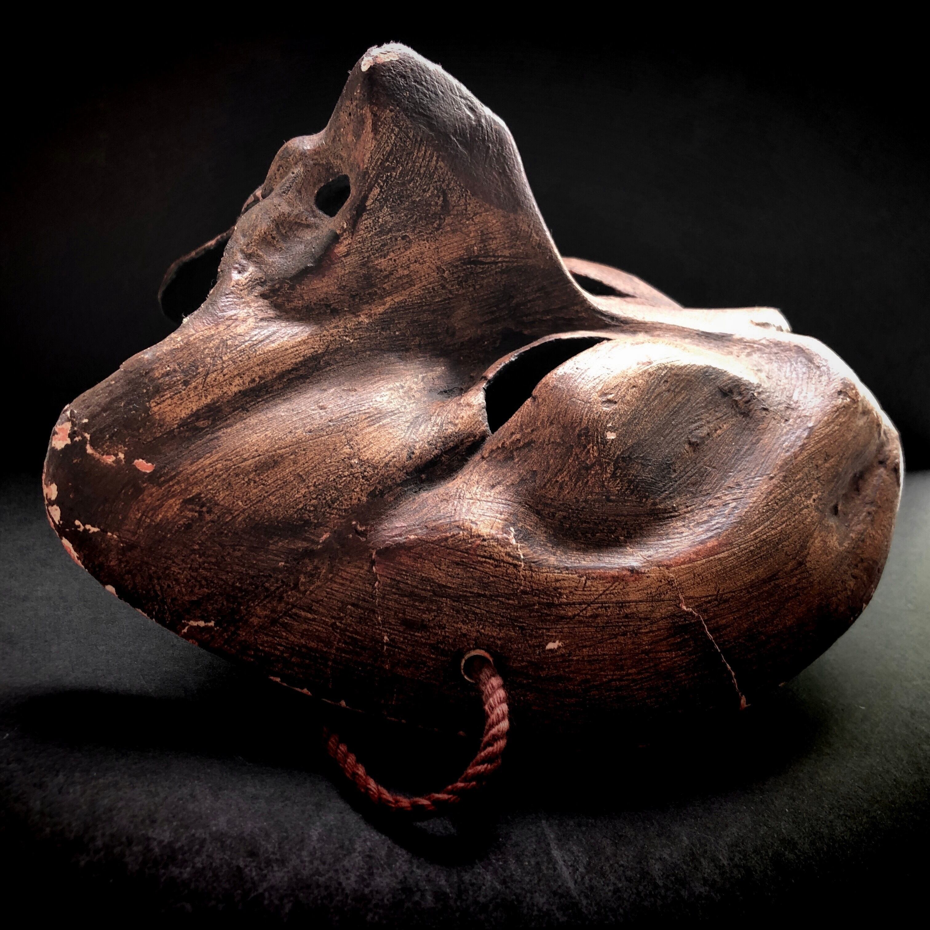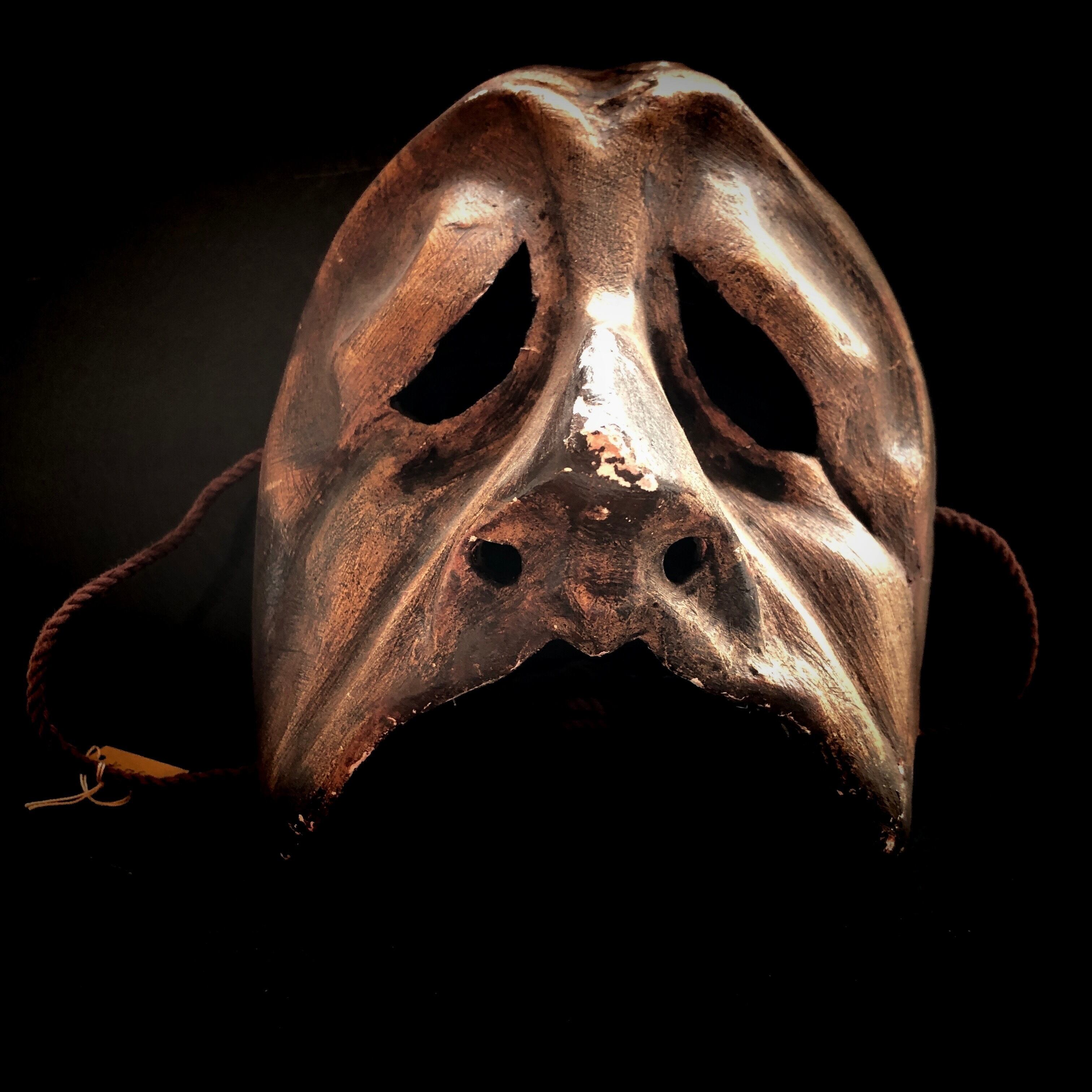 こちらの仮面は貪欲で金にうるさい、ケチな老商人であるパンタローネの仮面です。そんな彼の素性を知らなければ、表面的には悲しげ…あるいは老いた苦痛の顔にも見えるでしょう。