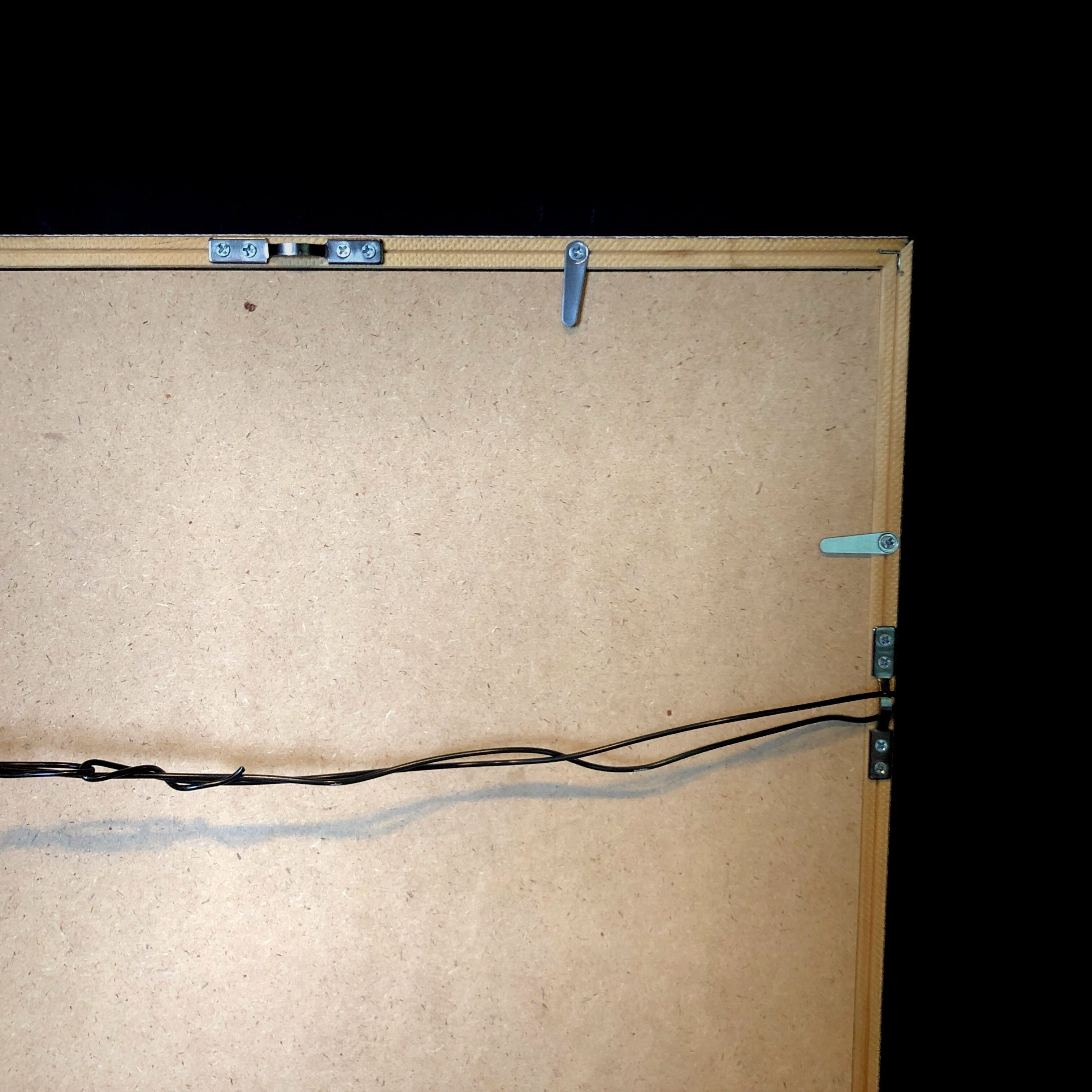 写真は反射防止の為、アクリル板を抜いて撮影しました。実際には木製額にアクリル板が入ります。額のサイズは大衣版、外寸約52.5×41センチです。