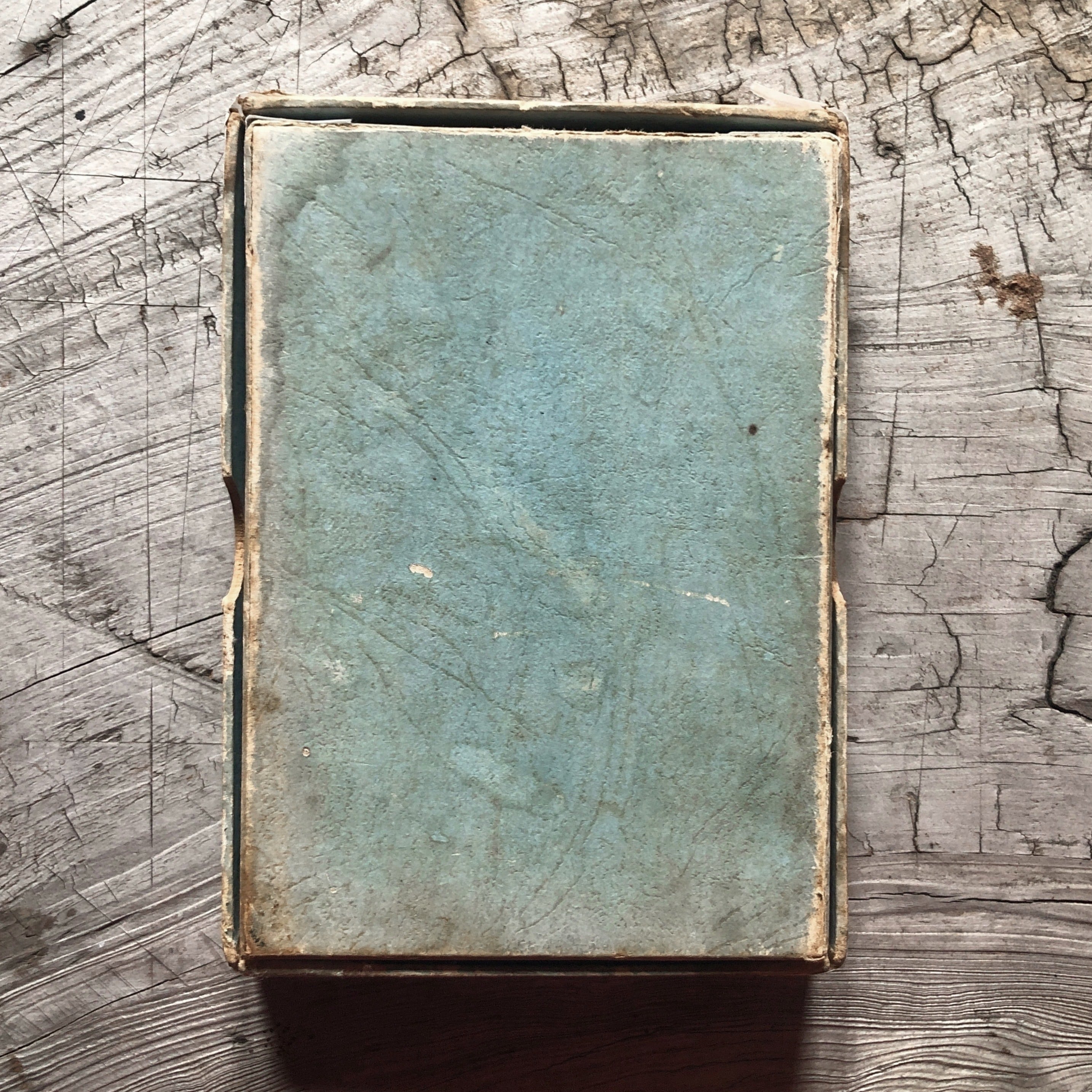 サイズはカードが約11×7.5センチです。箱に修繕のあとがあり、大切にされた様子が伺えますが、古いもので、実際に使用されたものですので、汚れ、傷のあるカードもあります。