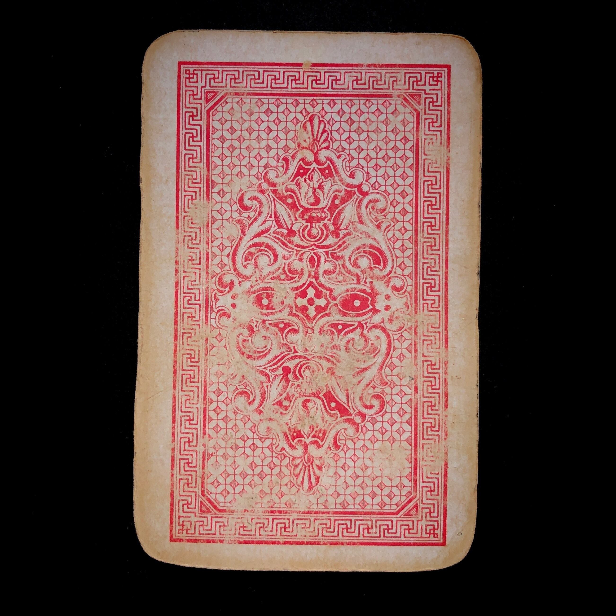 フレームは19世紀、フランス製で、占いカードはほぼ同時代かもう少し新しいものです。サイズはガラス板が約6.5×10.6センチです。