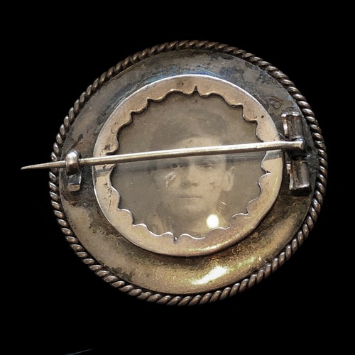 シルバーの表面に施されたモノグラムは M と I でしょう。凝ったモノグラムの裏を返すとそこには少年の写真が納められています。これは亡くなった方の思い出を常に身につけておく、形見のモーニングジュエリーと考えてよいと思います。元は黒く塗装されていた形跡もそのことを裏付けています。