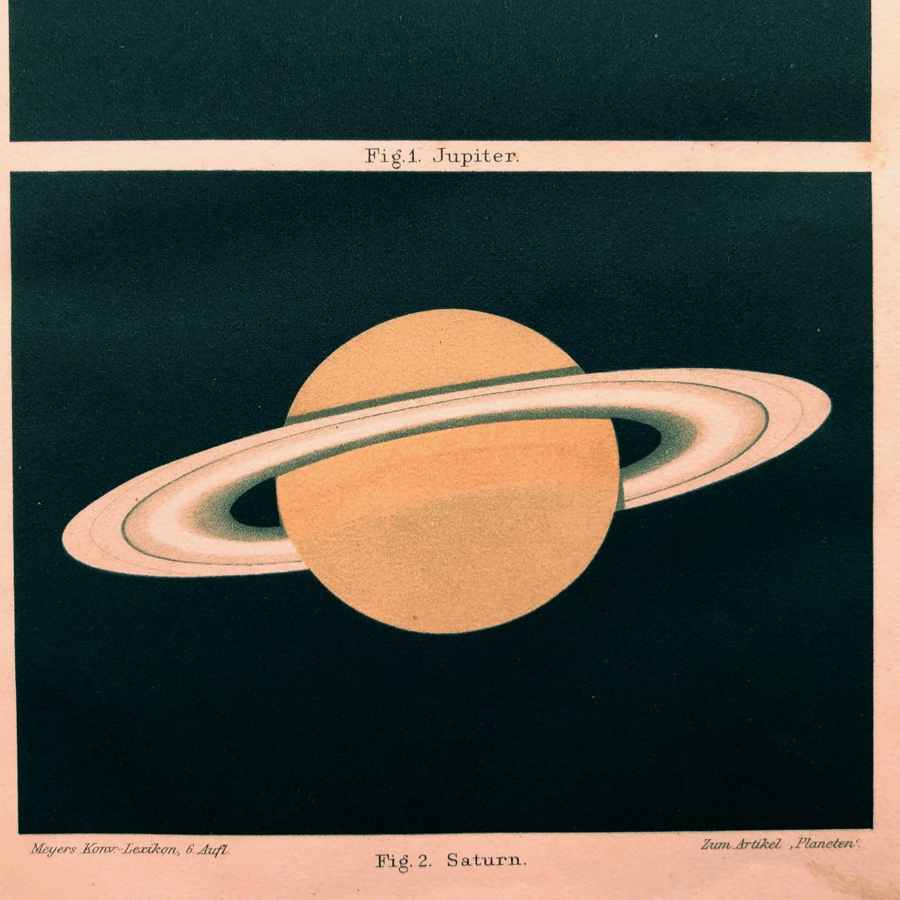 木星に浮かぶ不思議な模様、土星のぐるりと囲む大きな輪、それらは当時の人々の心を掴んで離さなかったのでしょう。ぽっかりと浮かぶ2つの星はまるで子供の頃に見た夢の世界のようです。