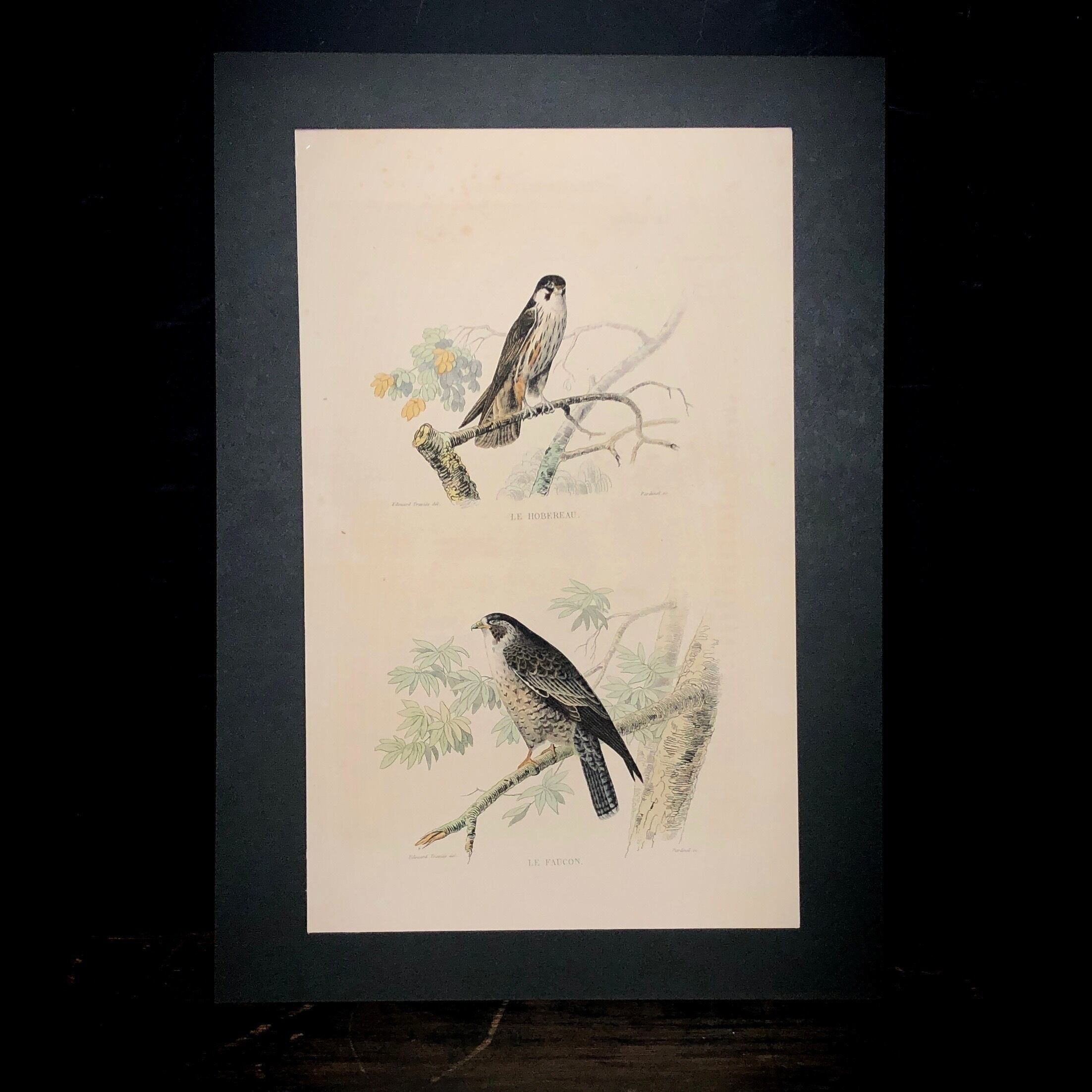 アンティーク鳥類博物画「チゴハヤブサ、ハヤブサ」