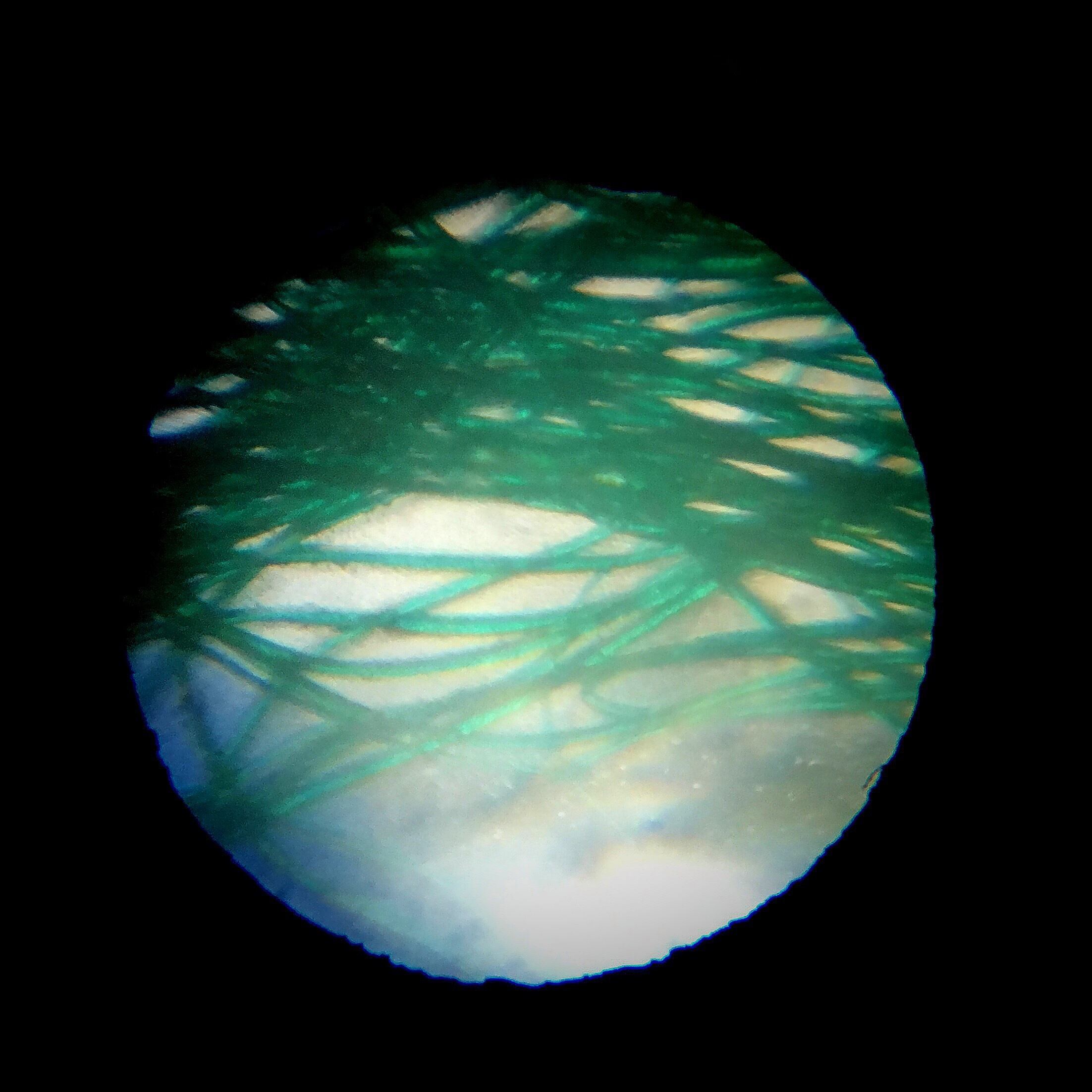 現在でも使用できます。プレパラートをセットして、鏡を調節して光を入れ、ドラム式の筒を上下させてピントを合わせると見えます。特に難しい技術は必要ありません。プレパラートは樫の樹皮と毛糸のようです。サイズは、本体が、一番縮めた状態で高さ約16センチです。