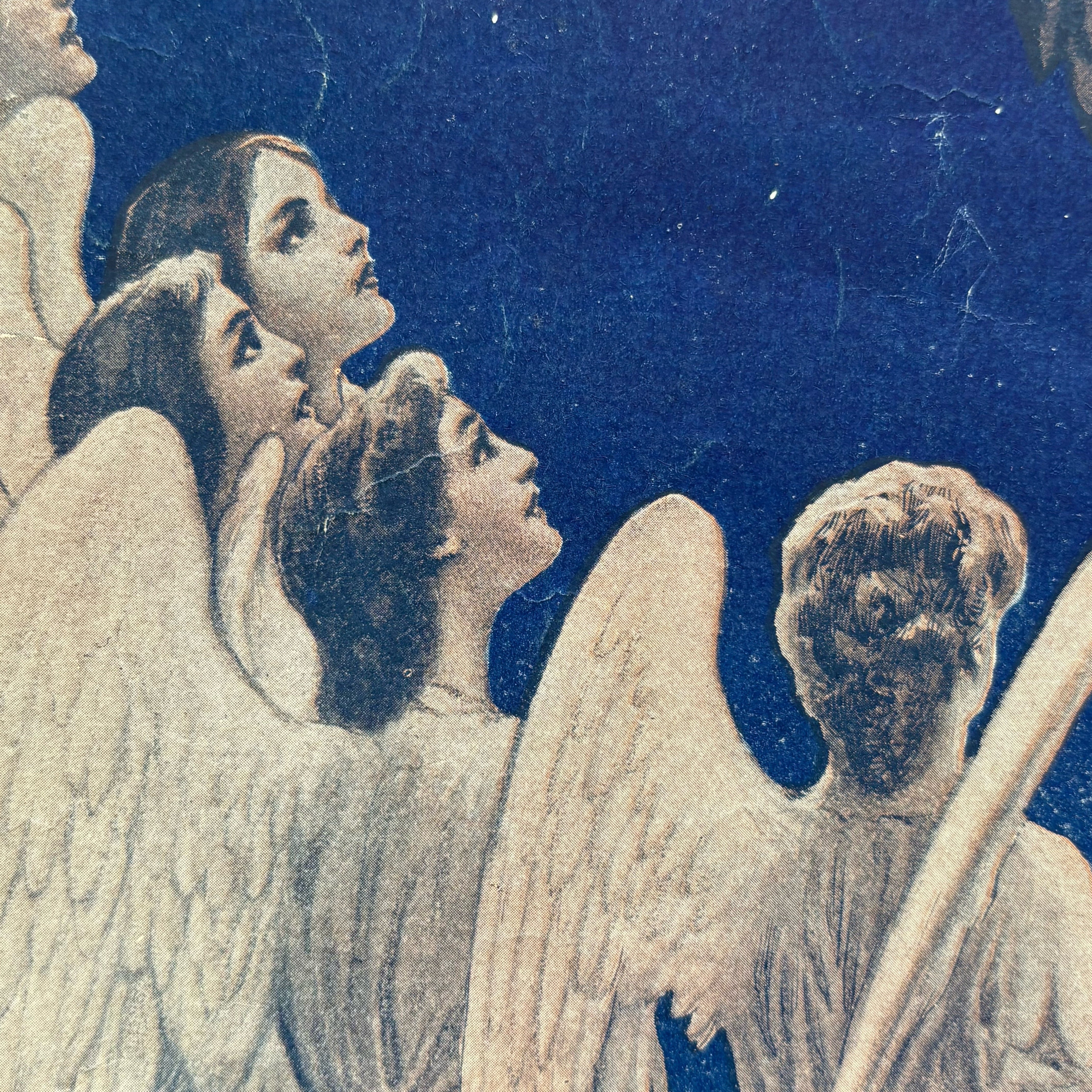 星を掲げる天使、それを見つめる天使たち、みんな星の栄光を讃え慕う表情にあふれ、背景の深い青も美しく、この絵を見ているだけで優しいピアノの旋律が聞こえてくるようです。